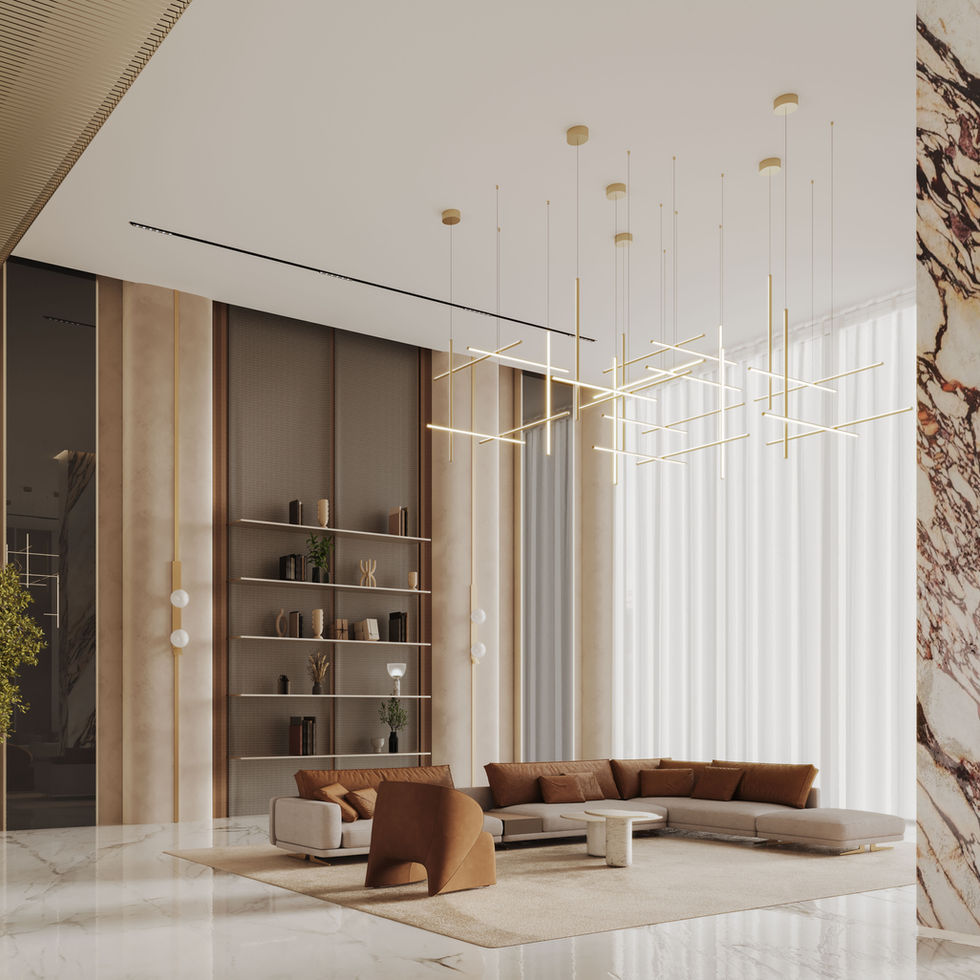 Binghatti Ghost'un iç mekanları, her bir öğenin rafine zarafetin hikayesini anlattığı sanatsal zanaatkarlığın bir senfonisidir. Ahşap porselen yüzeyler, zeminden tavana pencerelerle buluşarak doğal ışığın mekanda dans etmesini sağlar ve şampanya metallerinin ince ışıltısını aydınlatır. Her malzeme dikkatlice seçilir, her yüzey titizlikle işlenir ve sıradan olanı olağanüstü olana dönüştüren lüks ve modernliğin kusursuz bir karışımı yaratılır.